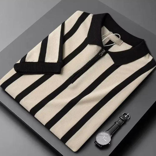 Men’s Striped Half-Zip Polo Shirt | Retro Knit Design | Summer Smart-Casual