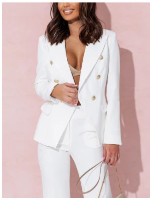 Tailored Power Suit Set | Double-Breasted Blazer & High-Waist Pants | Sleek Formalwear