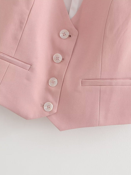 Blush Elegance | Tailored Button-Up Vest | Soft Pink