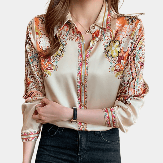 Floral Print Satin Blouse | Elegant Button-Down | Lightweight & Silky | Office & Casual