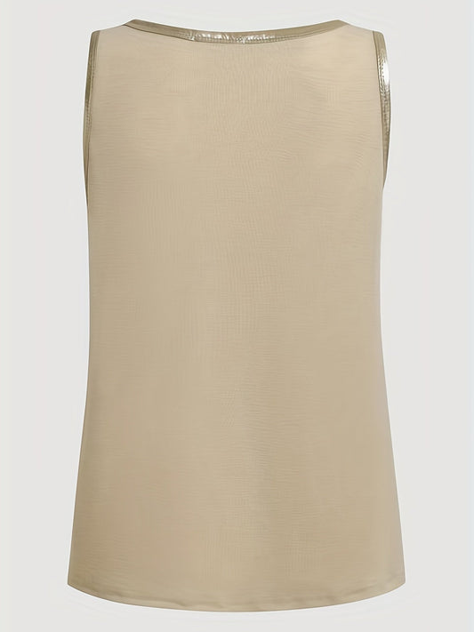 Sleeveless Scoop Neck Tank | Metallic Trim Casual Top | Relaxed Summer Layer