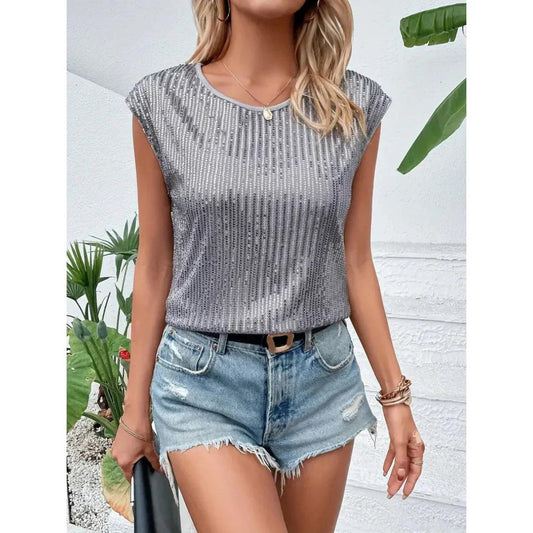 Sequin Knit Sleeveless Top | Sparkle Texture | Casual Glam Summer Layer