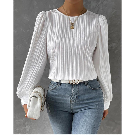 Pleated Long Sleeve Blouse | Lightweight Woven Fabric | Elegant Fit