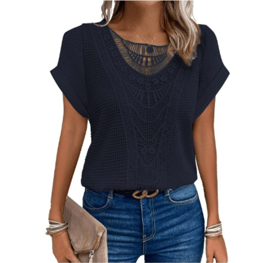 Crochet Trim V-Neck Blouse | Short Sleeve | Relaxed Summer Fit