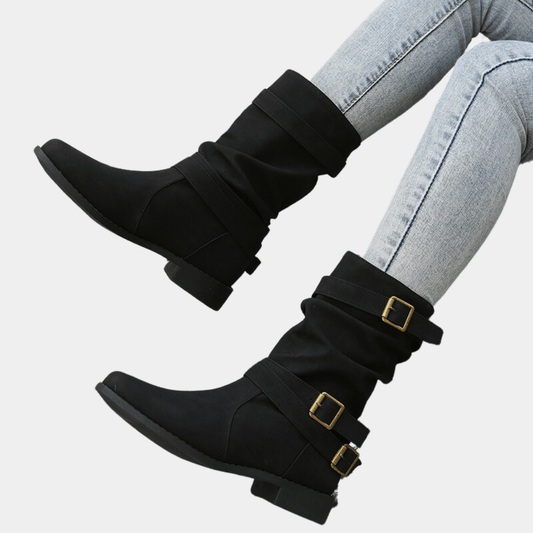 Buckle Strap Mid-Calf Boots | Stylish & Versatile | PU Leather | Everyday Comfort