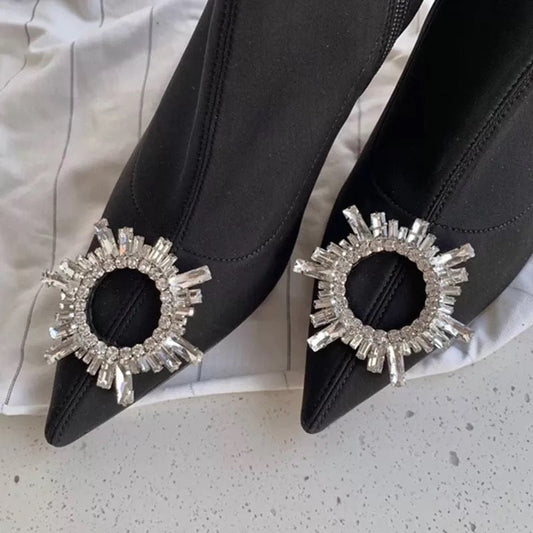 Embellished Pointed-Toe Ankle Boots | Sleek Design | Rhinestone Accent | Elegant Style