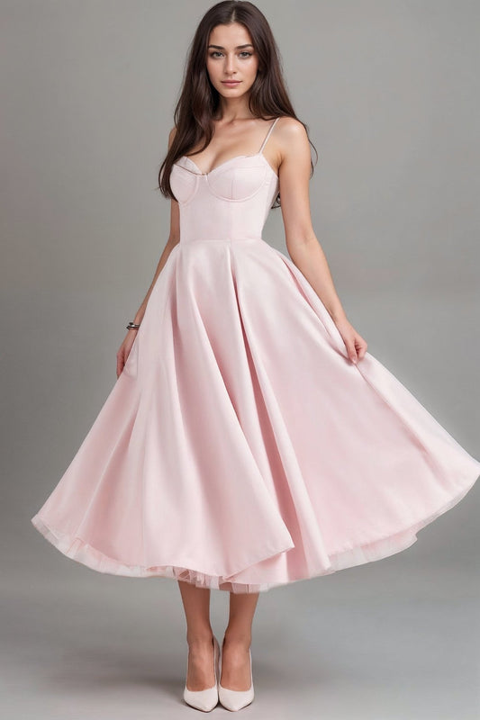 Satin Midi Dress with Corset Bodice | Fit-and-Flare Design | Elegant Evening Wear