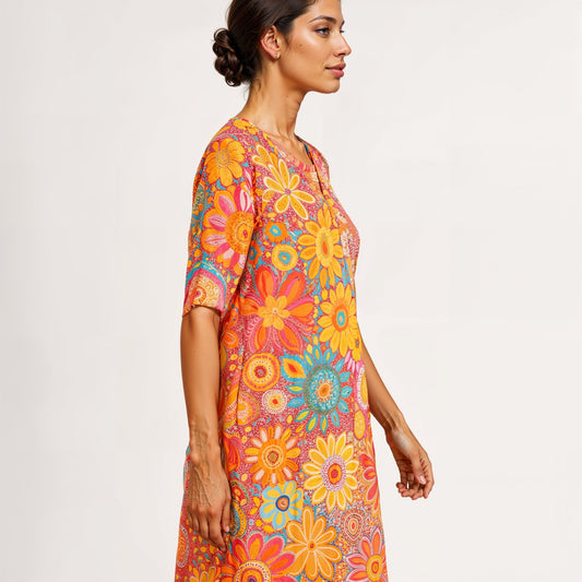 Vibrant Floral Tunic Dress | Lightweight Cotton Blend | Boho Style | Everyday Comfort