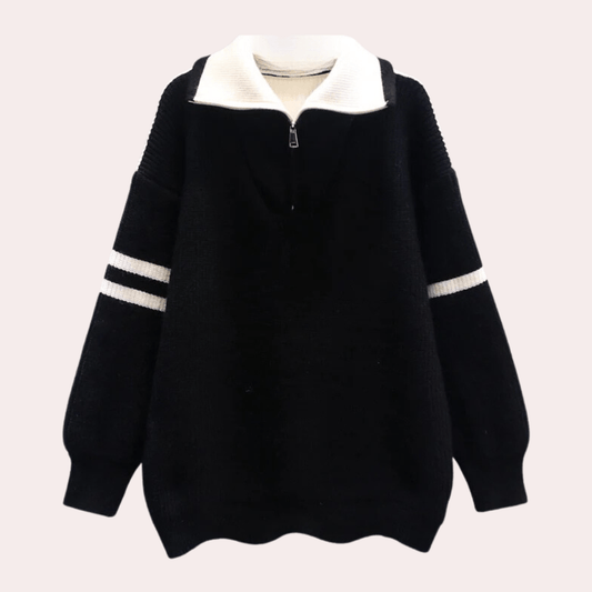 Oversized Quarter-Zip Sweater | Contrast Collar | Soft Knit | Casual Wear