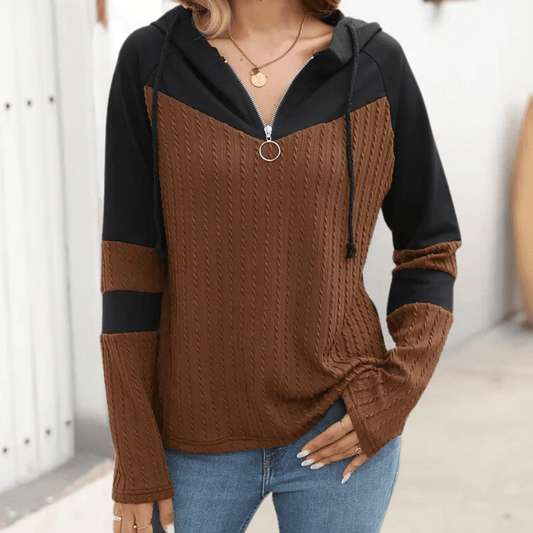 Two-Tone Knit Hoodie | Zipper Detail | Cozy & Stylish | Fall & Winter