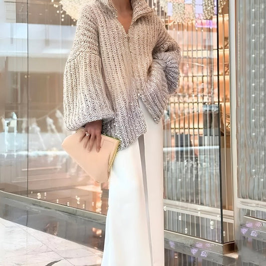 Women's Chunky Knit Zip Sweater | Cozy & Oversized | Gradient Ombre Design | Fall & Winter Layer
