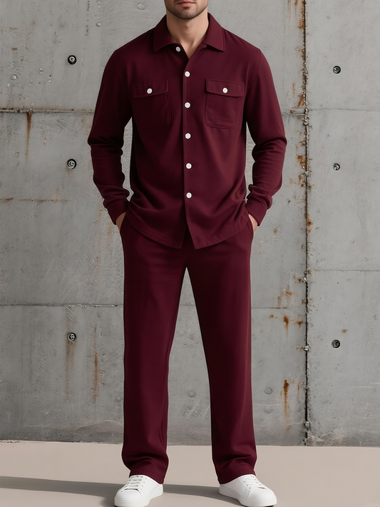 Men’s Two-Piece Lounge Shirt & Pants Set | Soft Knit Blend | Button-Up Long Sleeve
