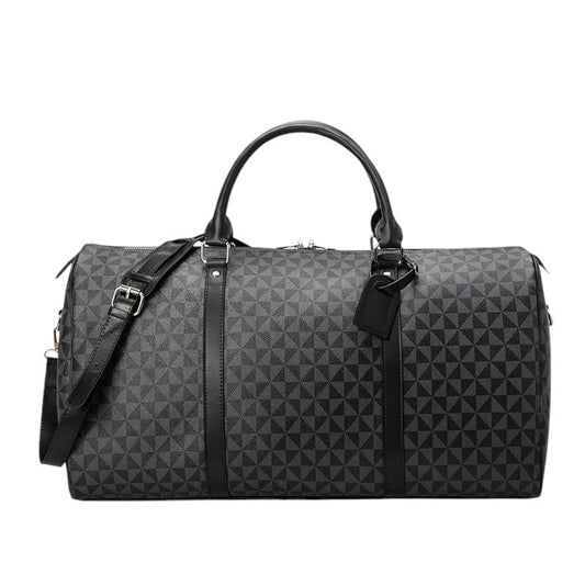 Designer-Inspired Weekender Travel Bag | Geometric Pattern Duffel | Leather Trim Carryall