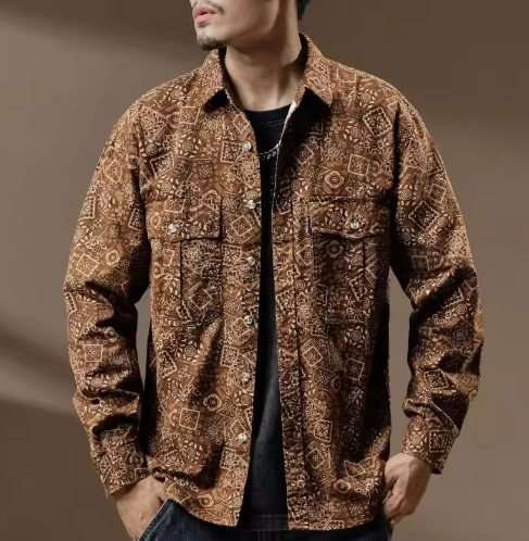 Patterned Overshirt Jacket | Button-Front Cotton Blend | Casual Layer