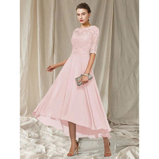Lace Bodice High-Low Dress | Half Sleeve Chiffon Skirt | Elegant Formal Eveningwear