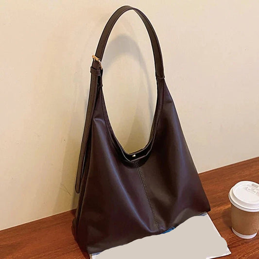 Minimalist Hobo Shoulder Bag | Soft PU Leather & Wide Strap | Slouchy Everyday Carry