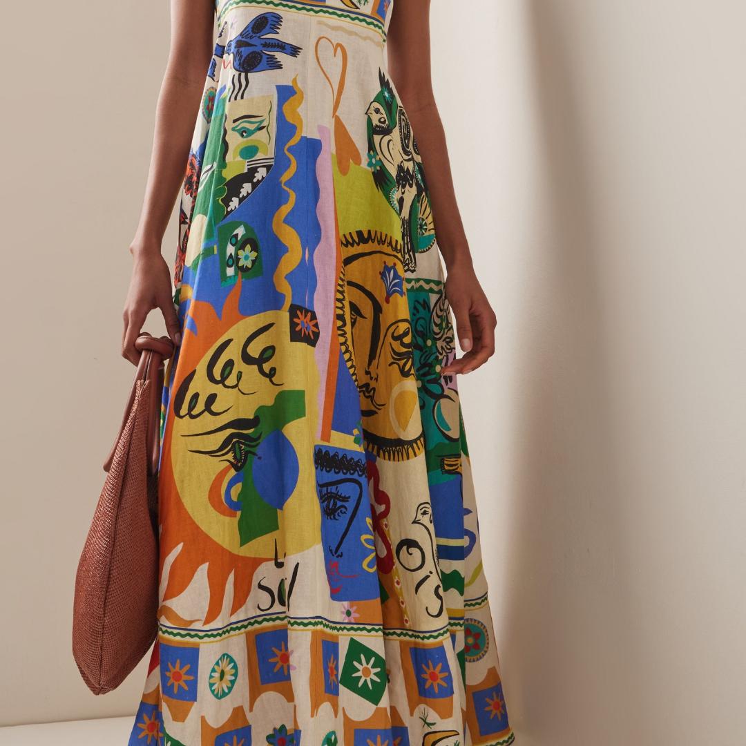 Make a vibrant statement in this abstract print maxi dress—designed for sunshine, strolls, and standout summer moments. Featuring an A-line silhouette, slim adjustable straps, and a smocked elastic back for ease and comfort, this piece combines bold pattern work with breathable movement. The full-length design flows effortlessly, making it perfect for artful daytime dressing or destination getaways in Canadian summer climates.