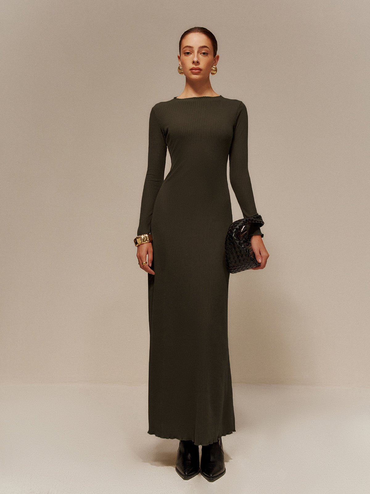 Belted Ribbed Knit Maxi Dress | Flattering A-Line Silhouette | Soft Stretch Fabric | Elegant Minimalist Style