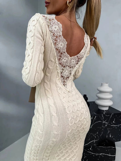 Cable Knit Bodycon Midi Dress | Long Sleeve Design | Elegant Winter Style