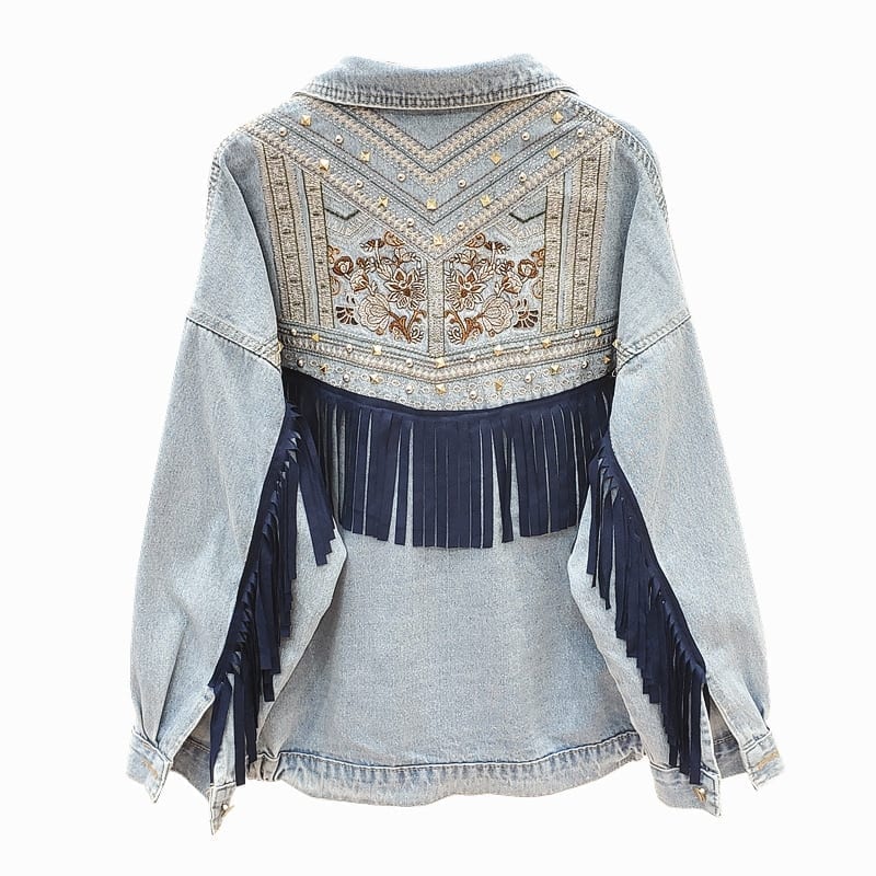 Embroidered Denim Jacket | Boho-Chic Design | Cotton Blend | Statement Outerwear