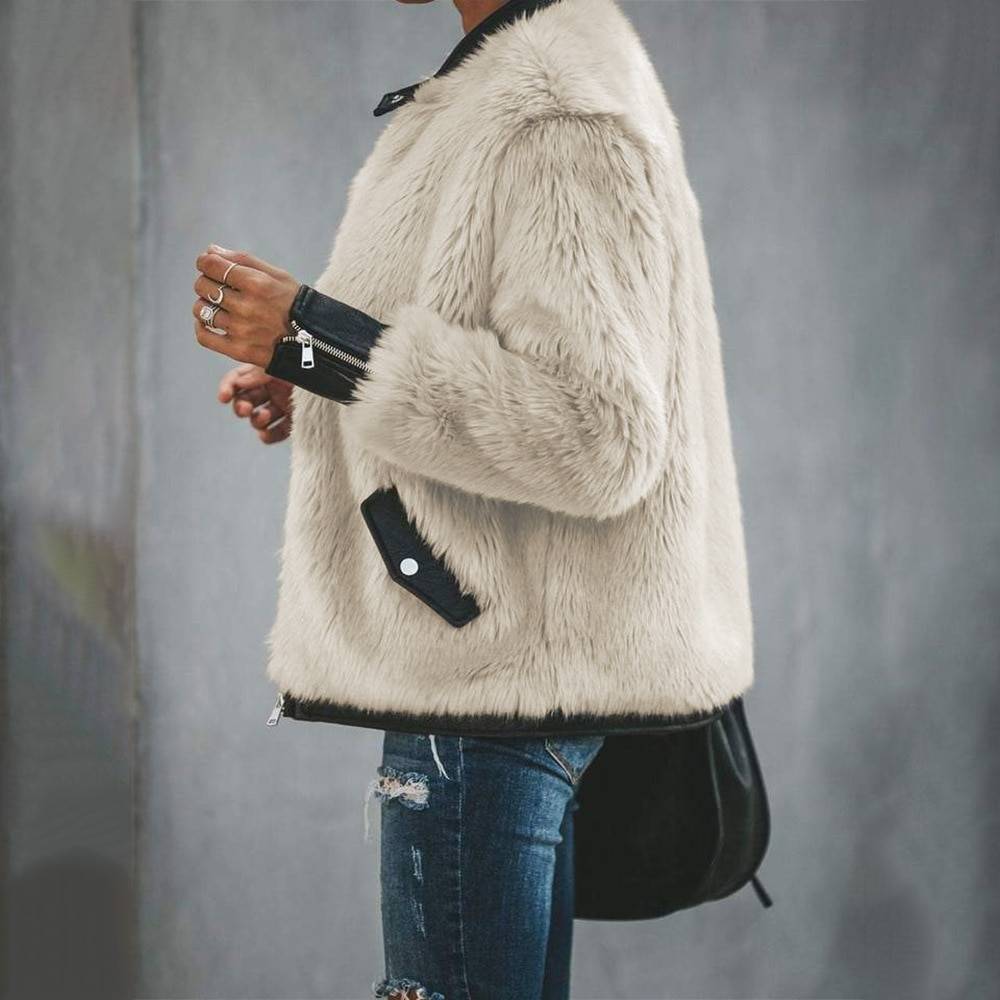 Faux Fur Bomber Jacket | Luxe Contrast Detailing | Warm Winter Outerwear