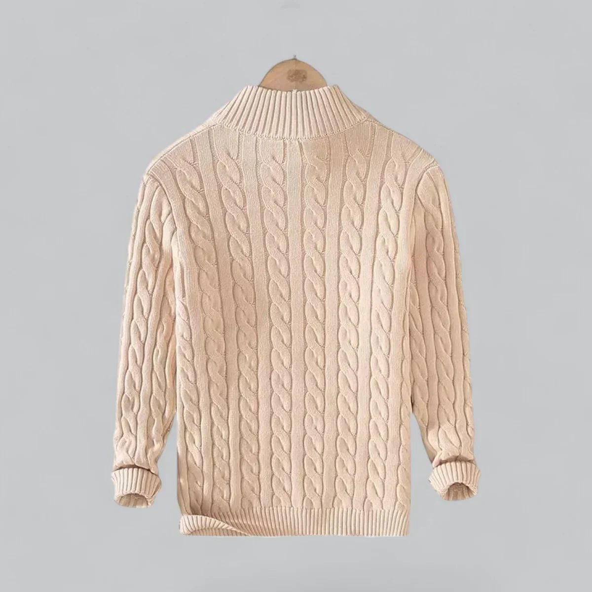 A timeless cable knit sweater designed for warmth, comfort, and effortless layering. Made from a soft midweight cotton blend, it offers breathable warmth perfect for Canada’s fall and early winter. The quarter-zip neckline adds versatility and style, making it suitable for both office wear and relaxed weekends.