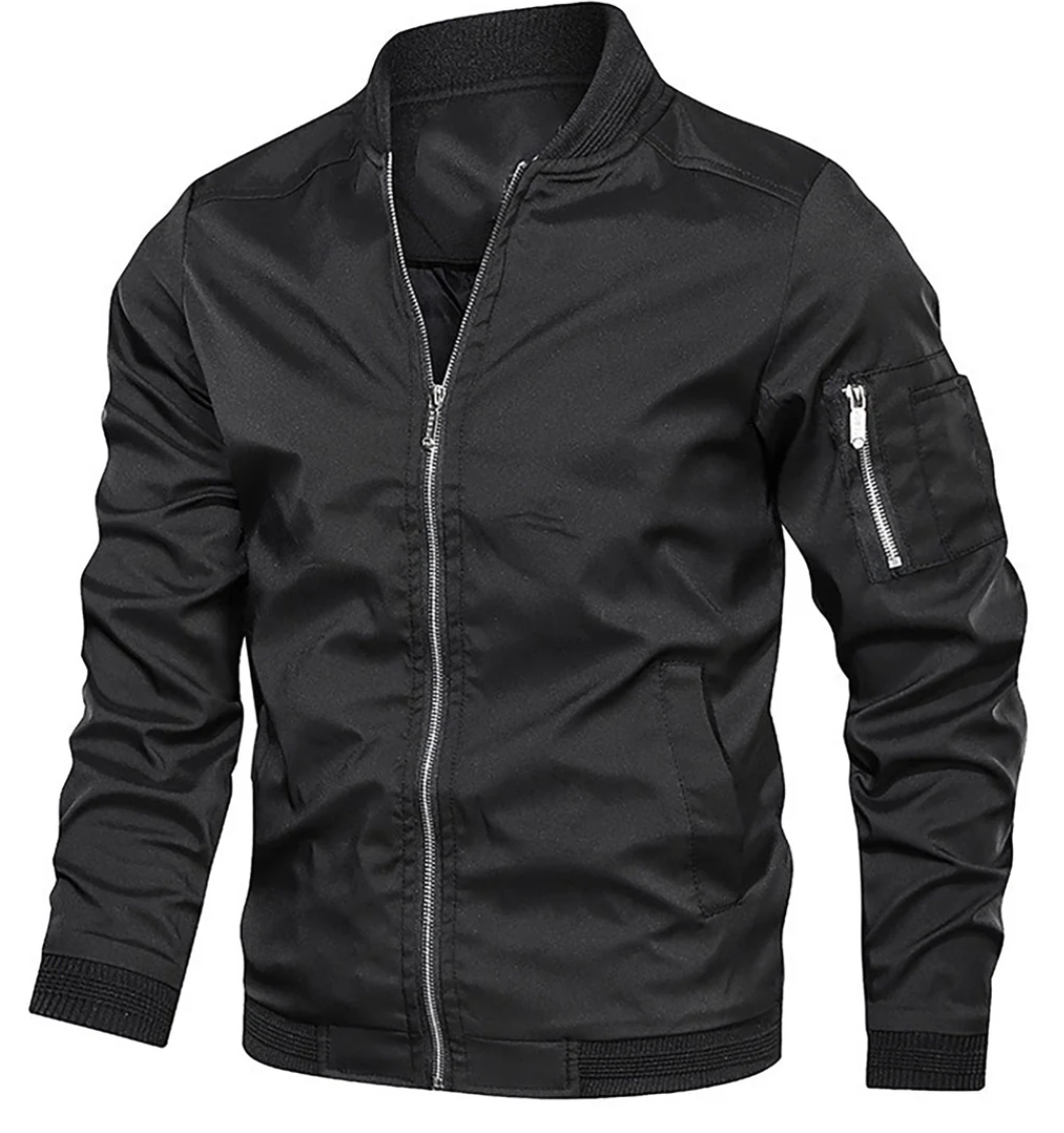 Add a sleek edge to your wardrobe with this lightweight bomber jacket, perfect for layering in Canada’s transitional seasons. Featuring a clean zip-up front, ribbed cuffs, and practical sleeve pocket, it combines utility with modern casual style. Easy to pair with everyday outfits, this jacket offers a comfortable balance of function and fashion.