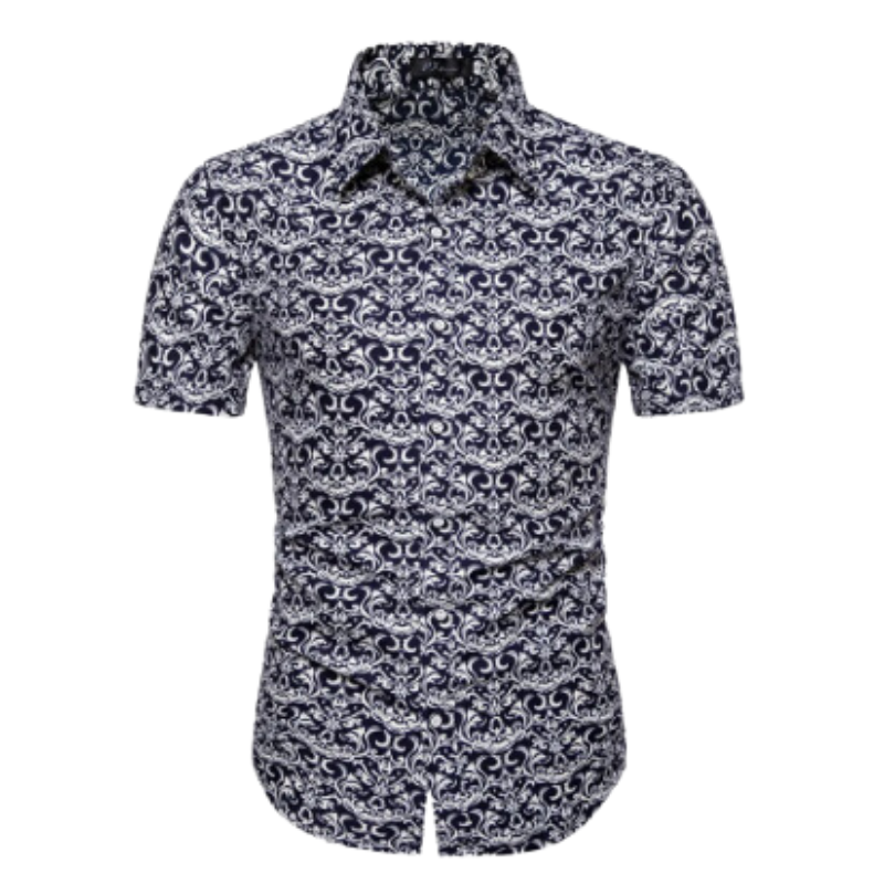 Men’s Navy Printed Short Sleeve Shirt | Button-Up Casual Summer Top | Slim Fit