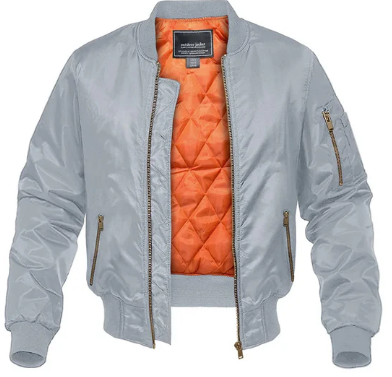 A timeless bomber silhouette with a bold twist, this jacket features a quilted orange lining for added warmth and visual edge. Designed for comfort and versatility, it offers lightweight layering ideal for Canada’s spring and fall seasons. Ribbed cuffs, collar, and hem complete the structured yet casual look perfect for urban wear.