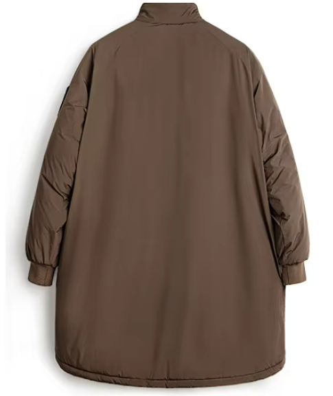 For crisp Canadian mornings and layered city looks, this quilted overcoat adds lightweight warmth with elevated simplicity. Designed with a clean, collarless neckline and longline fit, it works well over sweaters or hoodies for a relaxed winter-ready aesthetic.