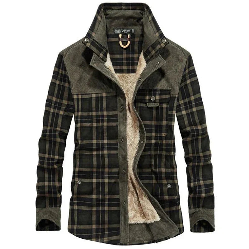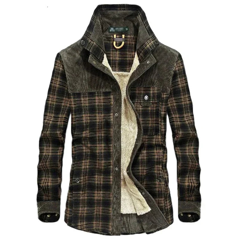 Men’s Sherpa-Lined Flannel Jacket | Corduroy Yoke & Plaid Outer | Fall Layering Shirt Jacket