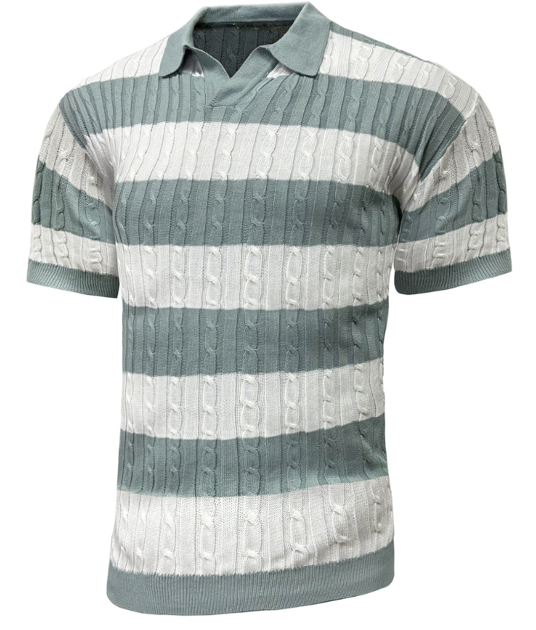 Men’s Striped Knit Polo Shirt | Cable Texture | Short Sleeve Casual Top