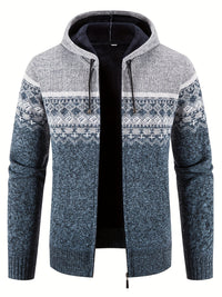 Men’s Zip-Front Knit Hoodie Jacket | Nordic Pattern | Casual Cold-Weather Layer