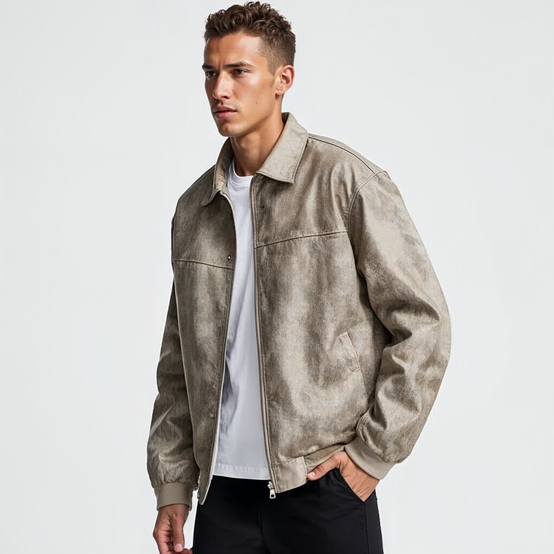 Men's Faux Suede Bomber Jacket | Relaxed Fit Streetwear Layer | Soft Lined Zip-Up