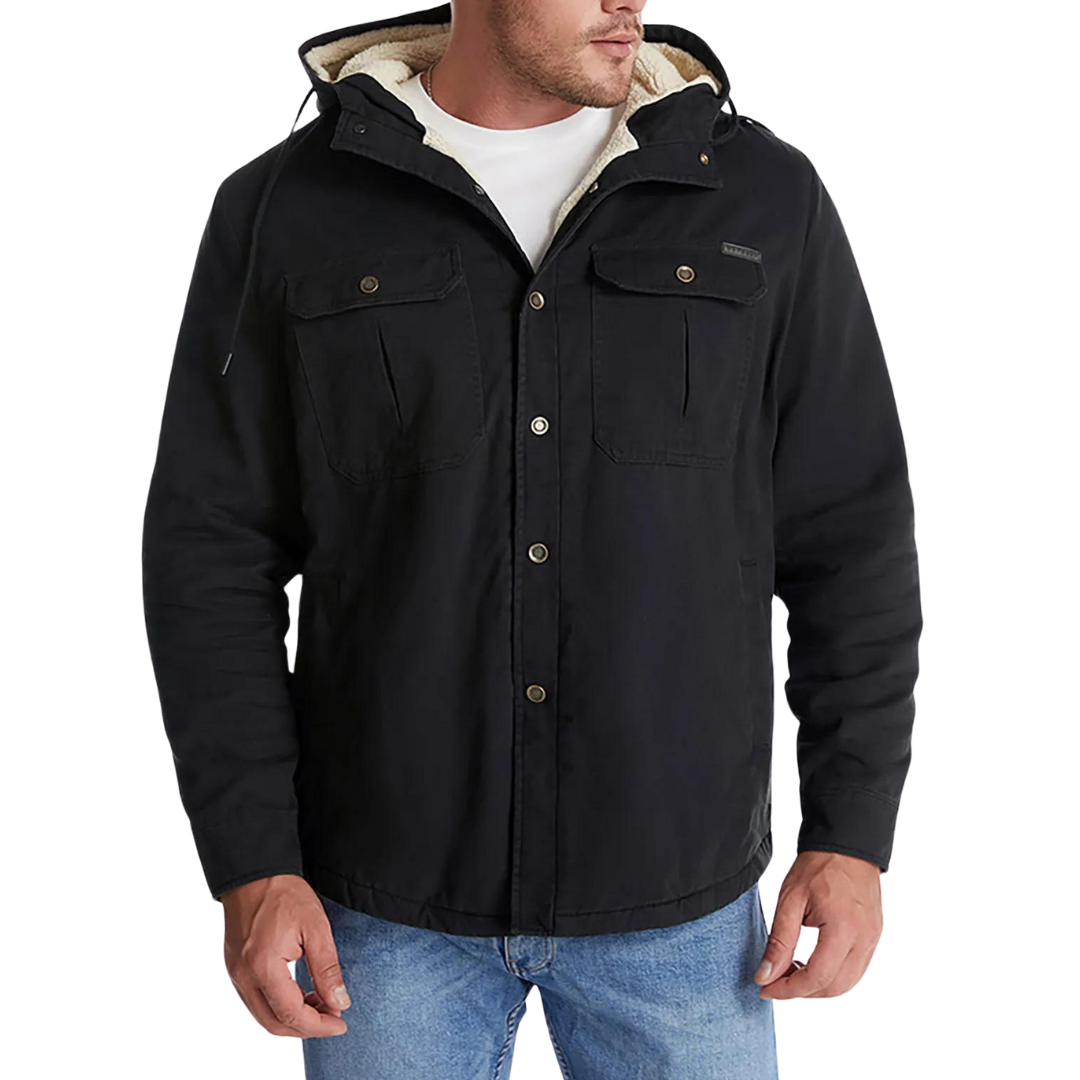 Built for casual durability, this canvas jacket delivers rugged warmth with a modern edge. The outer layer offers structured protection, while the sherpa-lined interior and hood provide comfort in cooler Canadian temps. With utility pockets and a laid-back fit, it’s ideal for transitional wear from city commutes to weekend outings.