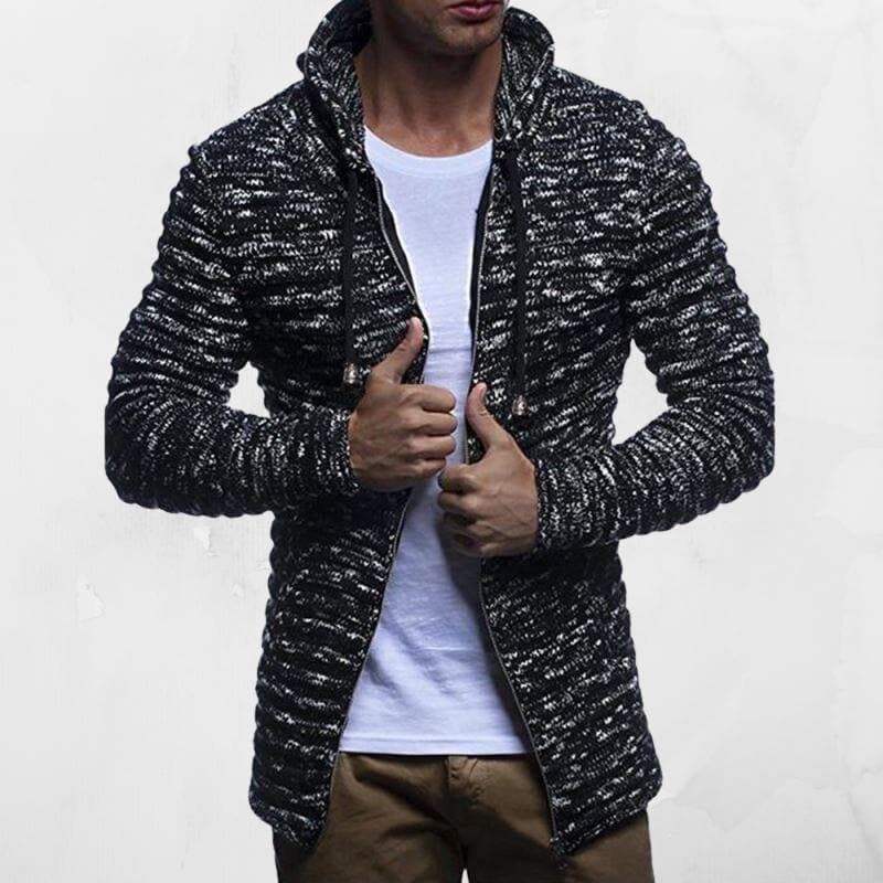 Men's Ribbed Knit Hoodie | Warm Zip-Up Sweater | Casual Winter Layer