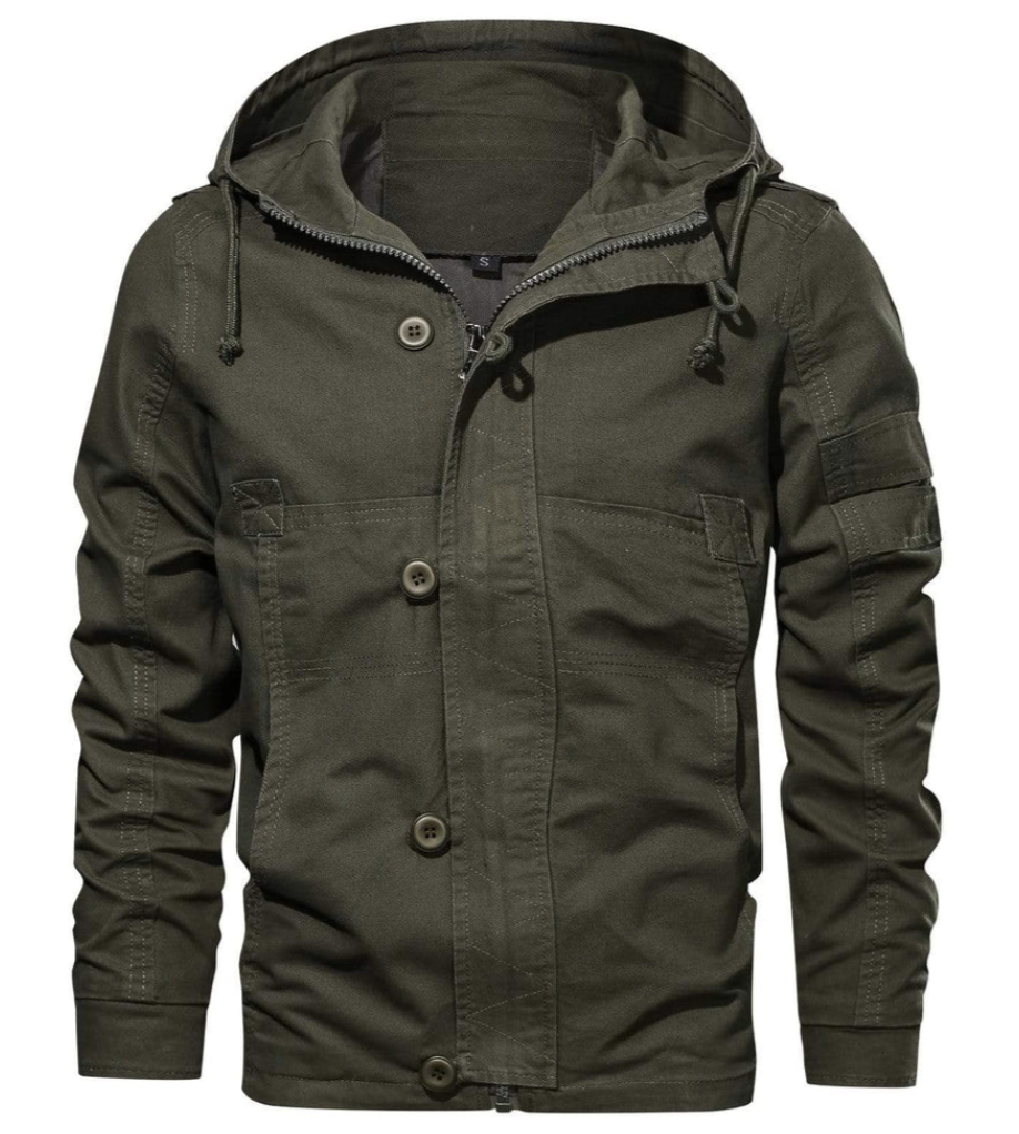 Men's Utility Cotton Jacket | Hooded Midweight Casual Coat | Button & Zip Closure