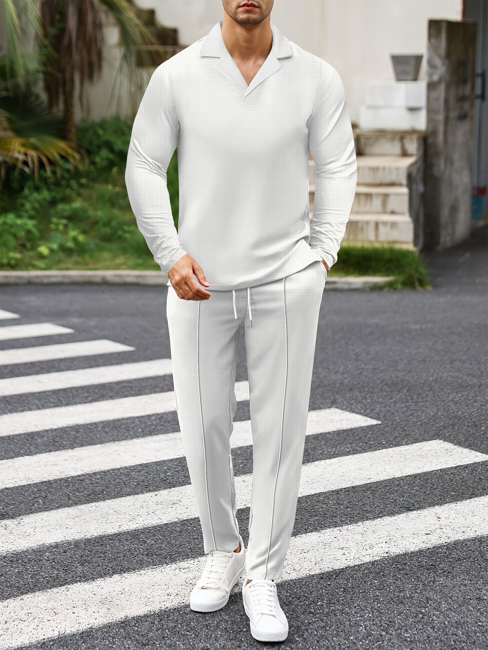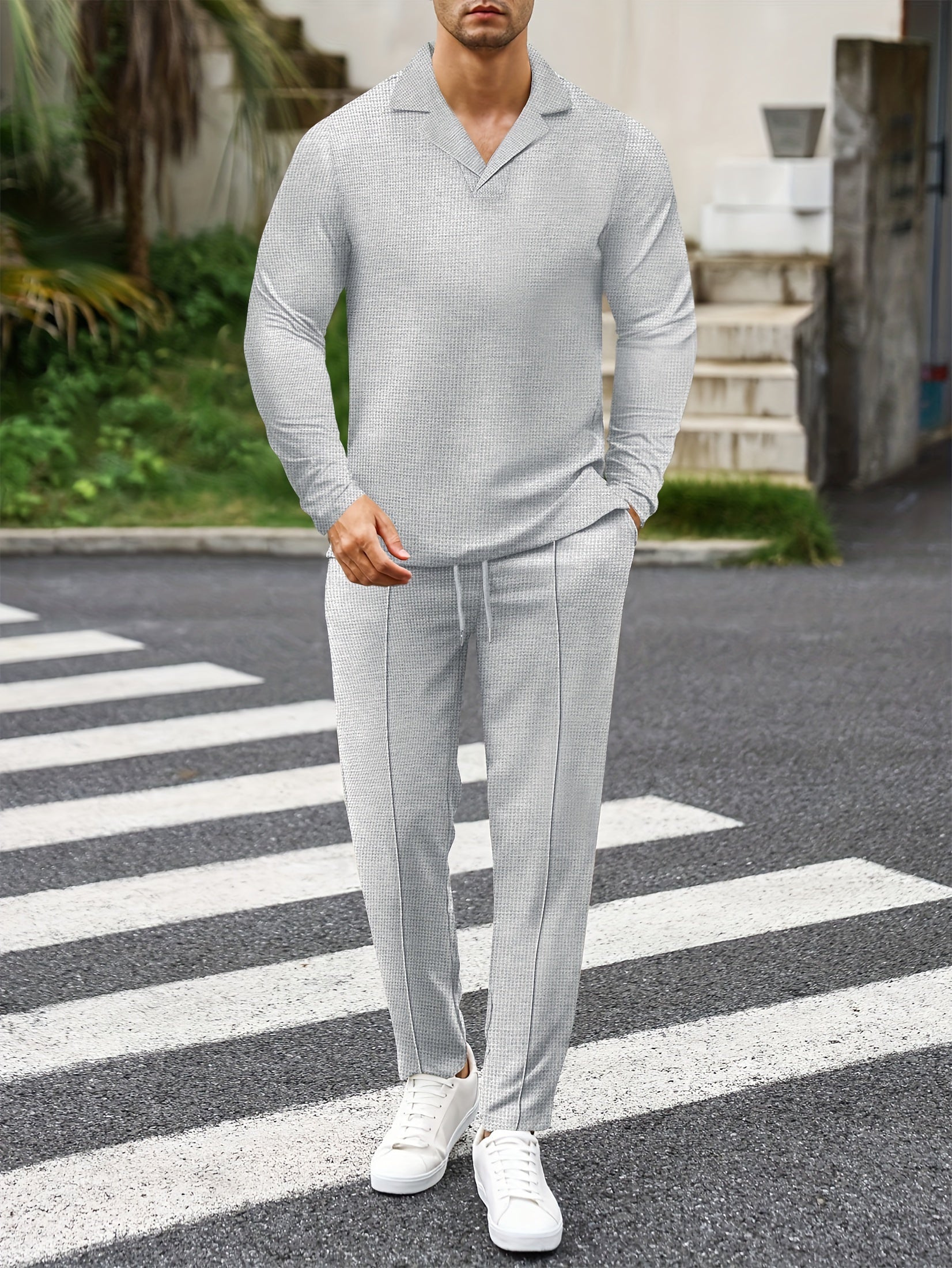 Men's Waffle Knit Lounge Set | V-Neck Pullover & Joggers | Lightweight Casual Wear