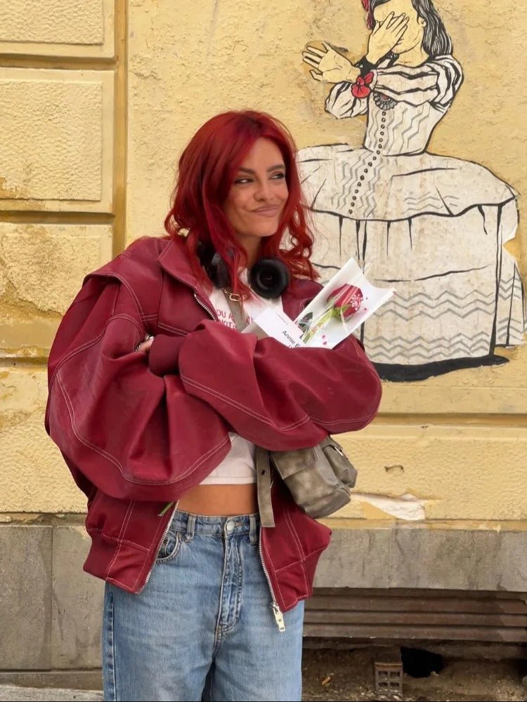 Oversized Faux Leather Bomber Jacket | Relaxed Fit | Vegan Leather | Streetwear Essential
