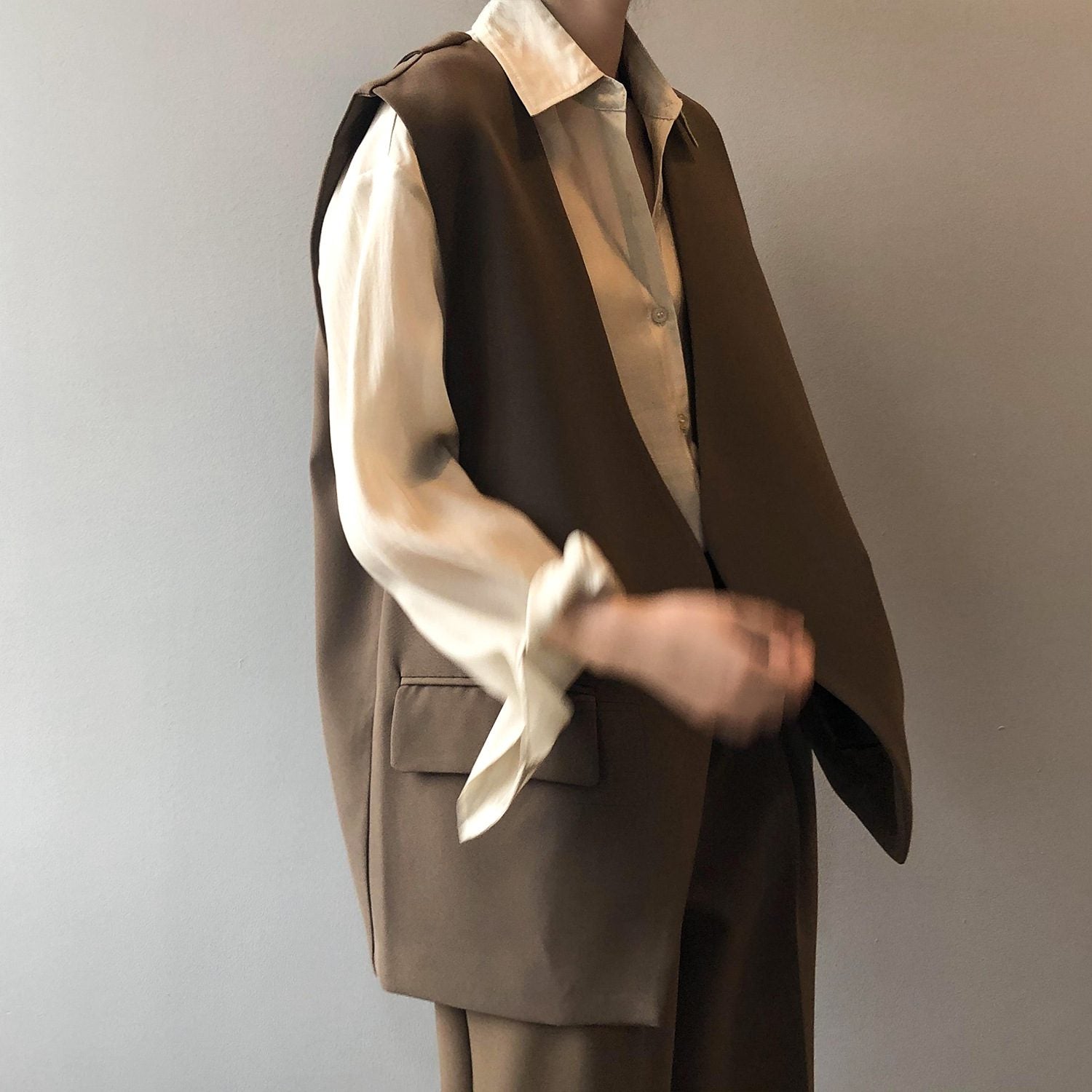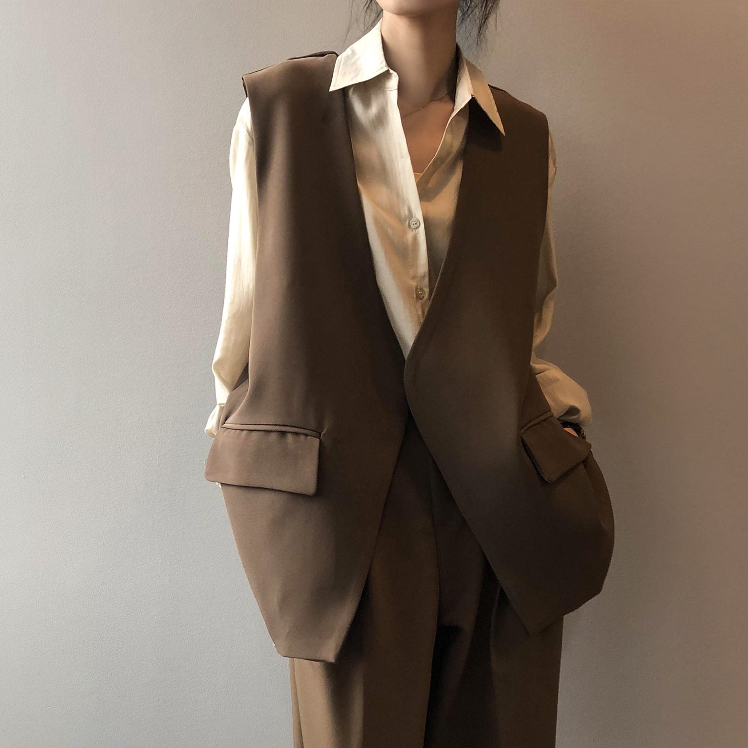 Add a sophisticated edge to your wardrobe with this oversized sleeveless blazer vest, designed for effortless layering and a modern tailored look. Its lightweight fabric makes it perfect for transitional seasons, ideal for both office wear and casual outings.