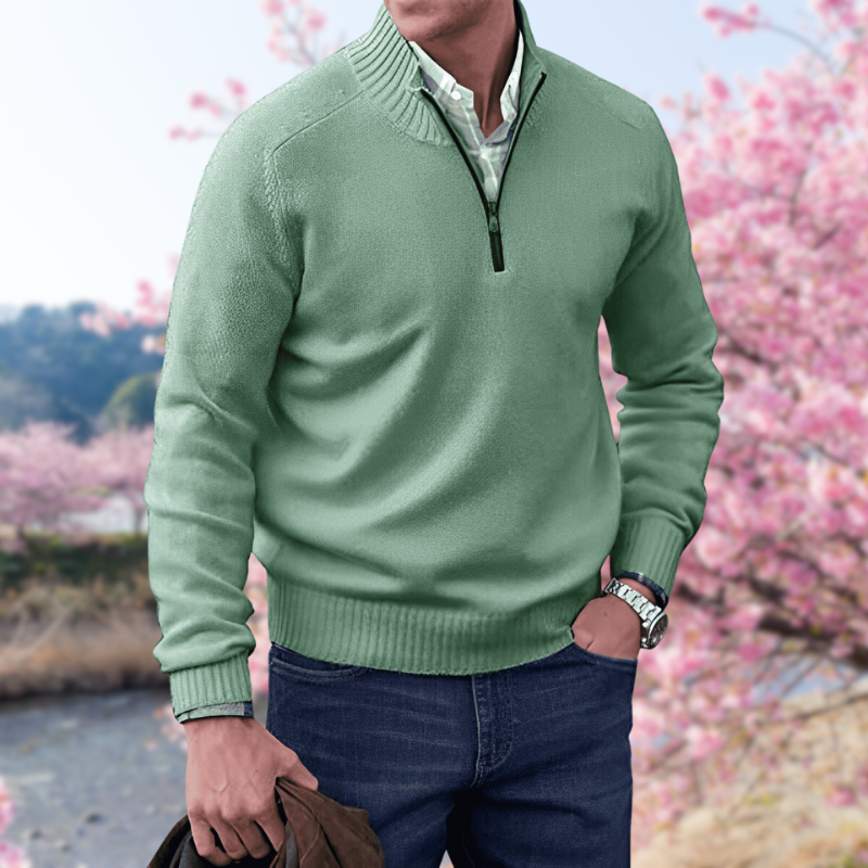 Quarter-Zip Cotton Sweater | Ribbed Knit | Smart Casual Pullover