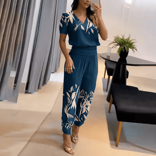 Relaxed Fit V-Neck Jumpsuit | Short Sleeve Design | Lightweight Comfort | Everyday Chic