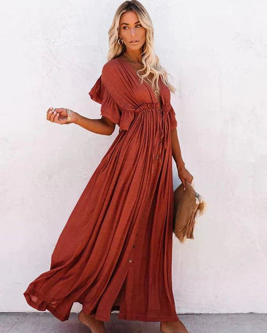 Bohemian Maxi Dress | Button-Front Design | 100% Cotton