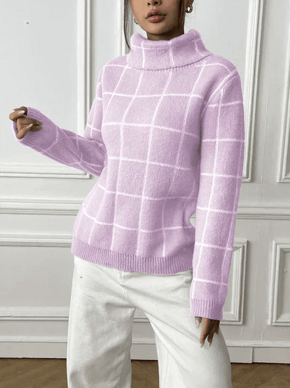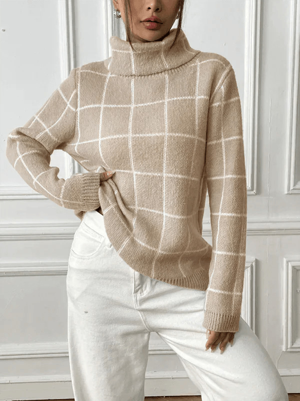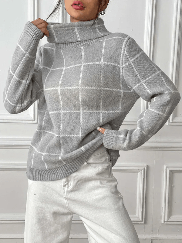Windowpane Turtleneck Sweater | Oversized Fit | Soft Knit | Modern Minimalist Style