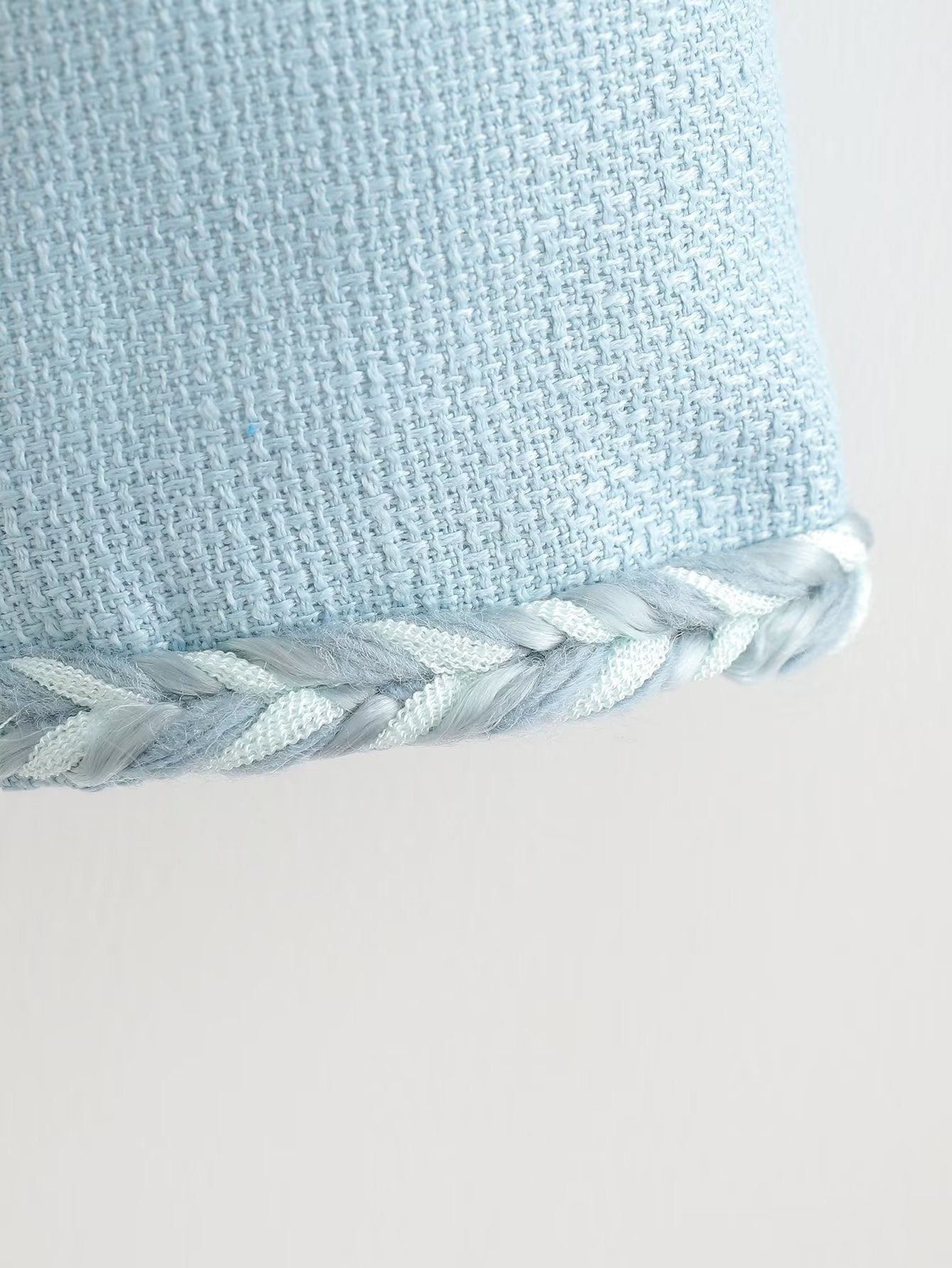 Elevate your wardrobe with this elegant light blue tweed jacket, designed with a timeless silhouette and sophisticated details. Featuring decorative braided trim, gold-tone buttons, and a tailored fit, this jacket blends classic charm with modern style. Perfect for both office wear and casual outings, it adds a polished touch to any look.
