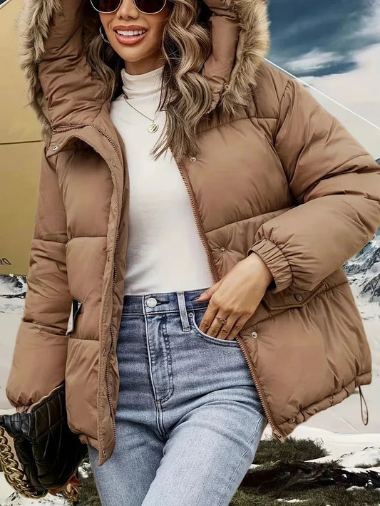 Faux Fur Hooded Puffer Jacket | Warm Insulated Design | Winter-Ready Outerwear
