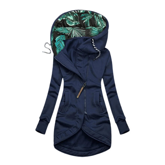 Women's Asymmetrical Hooded Jacket | Fleece Lined | Floral Hood Interior | Outdoor Casual Wear