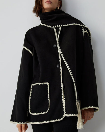 Wool-Blend Cape Coat | Fringe Trim | Oversized Fit | Elegant Statement Outerwear
